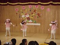 | 1ヶ月以上前からいっぱい練習をしてきたお遊戯会。お遊戯・合唱・合奏・お話ミュージカル・・・。お父さん、お母さん、おじいちゃん、おばあちゃんたくさんのお客さんの前で練習の成果を披露しました。とっても上手に出来ました。 | ||