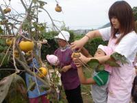 | 保育園の敷地には様々な実のなる木を植えてあります。柿もその一つ。この2年ぐらいたくさんの実をつけるようになりました。子どもたちに柿狩りをしてもらいました。 | ||