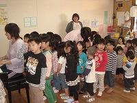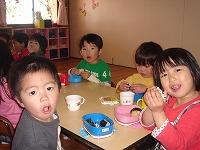 | 毎月、誕生日を迎えるおともだちをお祝いする行事です。どの園児も1年に1回主人公になります。みんなからお祝いの歌を歌ってもらい少し恥ずかしそうです。保育士からも毎月趣向を凝らした出し物が披露され、とても盛り上がります。 | ||