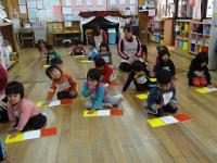 | 第2回目の保育参観を行いました。あかぐみは小麦粉粘土。きぐみは凧作り。ももぐみは鬼のパンツづくりと踊り。あおぐみはカルタ作りをしました。どのクラスも親子参加型で、子どもたちと一緒に父母、祖父母楽しんで制作して遊びも満喫されていたようです。子どもたちの保育園での様子を感じられたと思います。 | ||