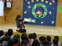 | 12月の誕生者は6名。キラキラの舞台の上で自己紹介しました。クリスマス会ではクリスマスの由来を絵本で読み聞かせてもらったり、各クラスからお遊戯の出し物をしたり、サンタさんが保育園にやってきたりととっても楽しい時間を過ごしました。給食もみんなで会食しました。 | ||