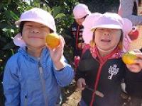 | 子どもたちが楽しみにしていたミカン狩りへネコバスに乗って出かけました。イマヤさんのミカン山へ着くと、年齢に応じて先生と一緒にハサミを使って切ったり、自分たちで収穫したりしました。たくさん収穫できたので、食後や3時のおやつにミカンを食べました。 | ||