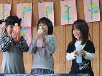 | ひなまつりは女の子が健やかに育つようにと思いを込めて行われます。保育園でもひなまつりの由来の話や絵本・紙芝居を読み聞かせました。女の子たちが出し物でお遊戯をしたり、年長児の男の子たちがお遊戯をしました。子どもたちのお楽しみカルピスとひなあられを飲んだり、食べたり。給食もひなまつりにちなみ、ちらしずしでした。 | ||