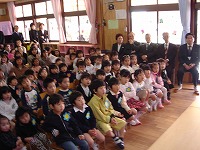 | 平成19年度の入園式を来賓の方々、保護者の皆さんをお迎えして行いました。 | 「かばくん」の大型絵本を見ました。 | みんなお話に入り込んでいます。 |