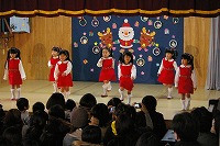 | 子どもたちが楽しみにしているクリスマスまで10日あまりとなったこの日、わたしたちの保育園にもサンタさんが来ますようにと願いをこめて、みんなで歌いました。 | ||