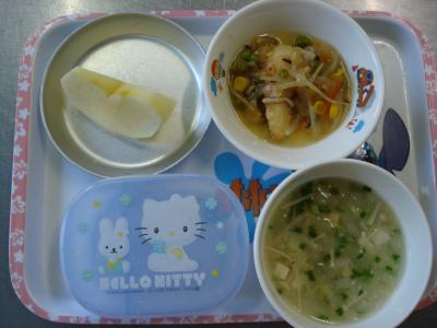 今日の給食は“魚の甘酢あんかけ”でした。