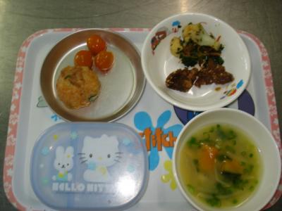 レバーの甘辛煮☆ごま和え☆味噌汁★チキンライスボール★キンカン漬け