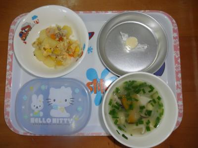 今日の給食は“コーンの卵とじ”でした。
