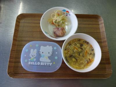 今日の給食は、“鶏のガーリックソテー”と“スパポテサラダ”でした~