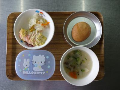 魚のコーン焼き☆蒸し野菜☆味噌汁★丸ボーロ